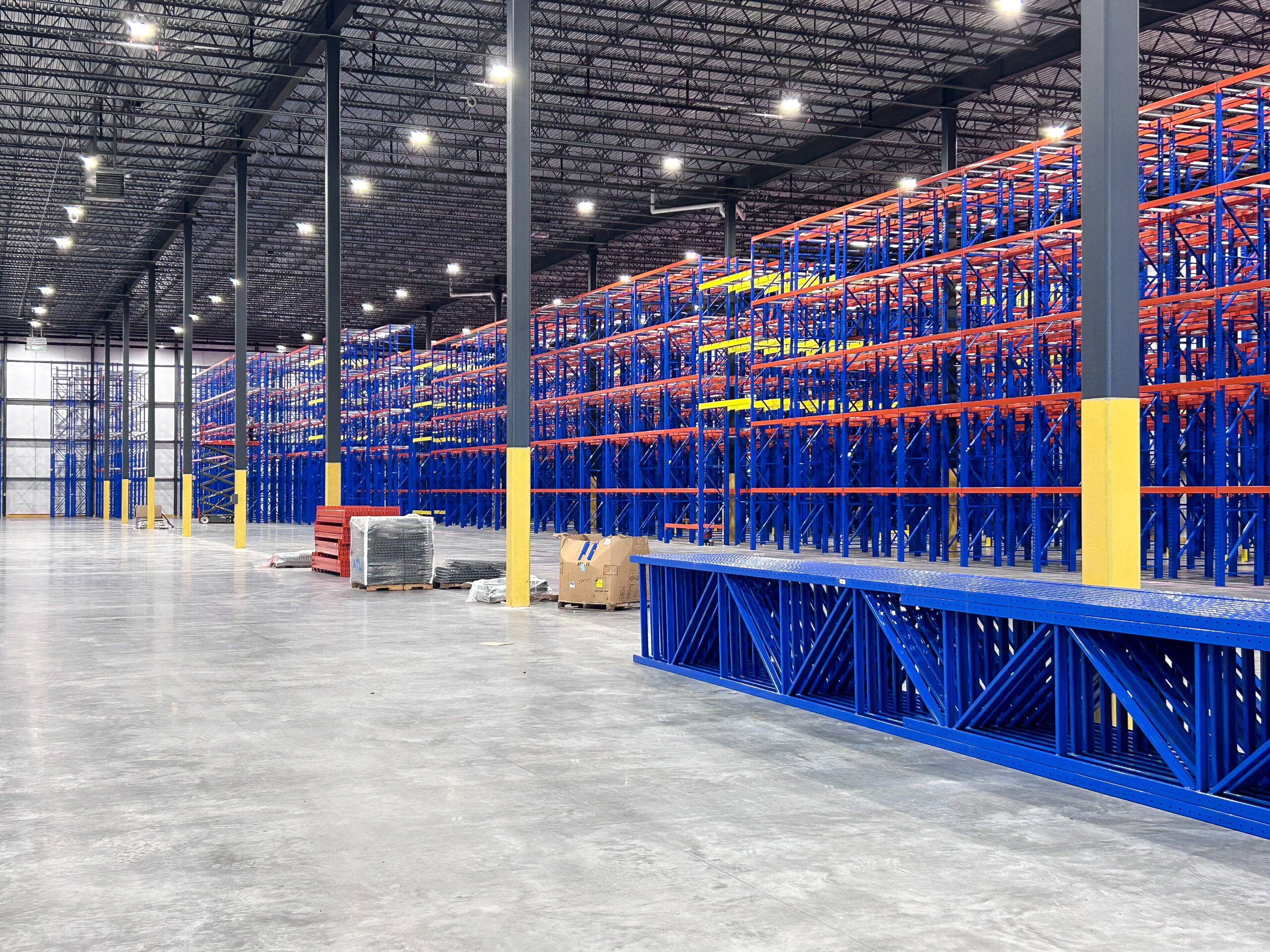 En 2023, Camrack a conçu et installé un système de racking Drive-In haute densité permettant l’entreposage de plus de 1 000 palettes. Cette solution sur mesure répond aux besoins spécifiques du client en matière d’optimisation de l’espace et de gestion des stocks.