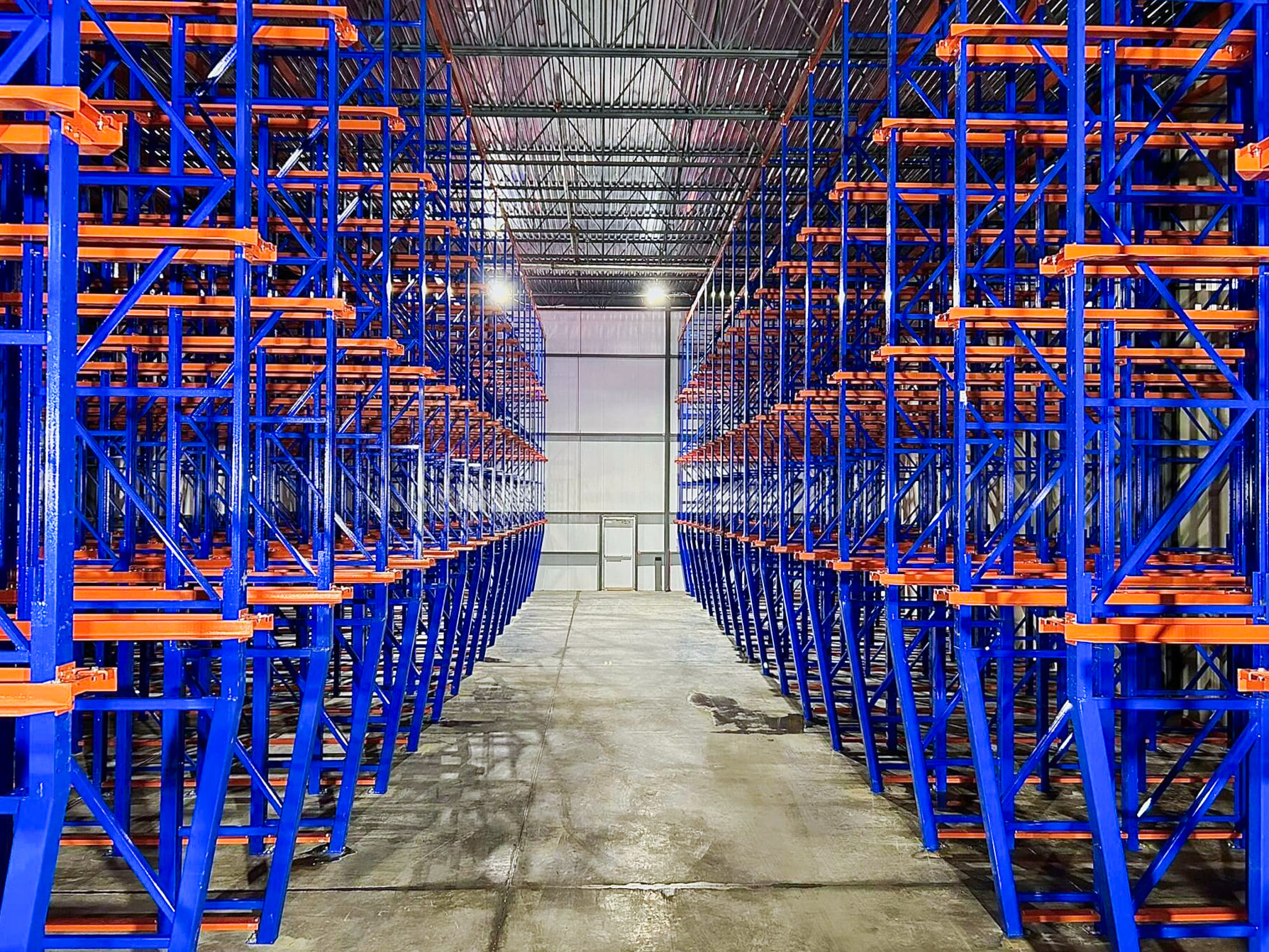 Après analyse des besoins opérationnels du client, l’équipe de Camrack a recommandé l’installation d’un système de racking Drive-In, reconnu pour sa capacité à maximiser la densité de stockage.